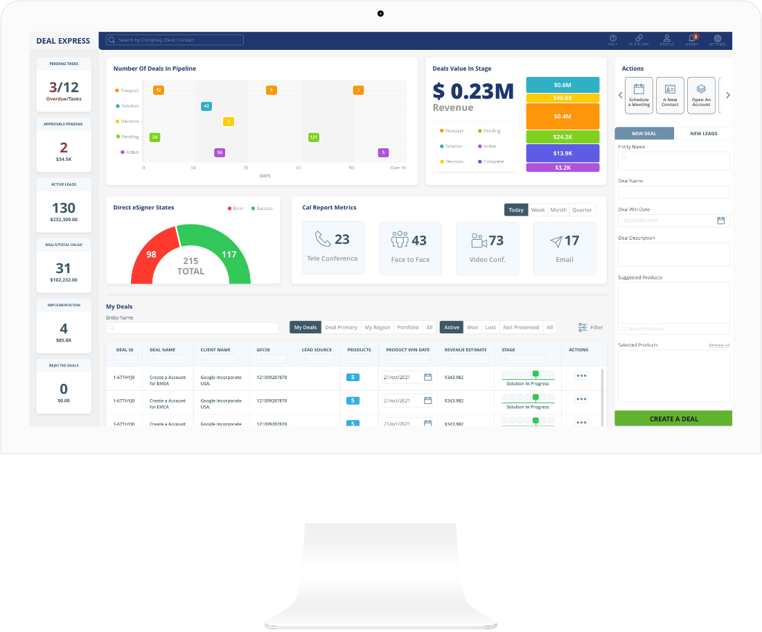 Deal Express is a customer relationship management (CRM) tool that helps users turn a lead into a deal and close it. Before putting the deal to a close, users will go through the various phases of the deal and enrich it.