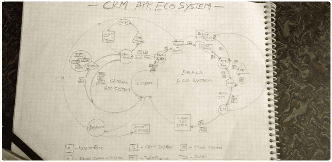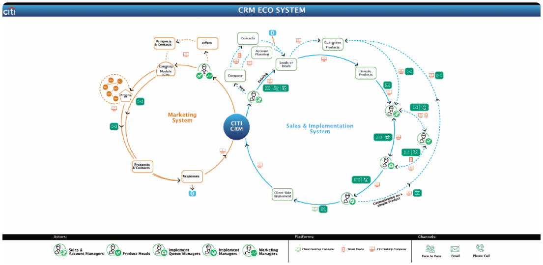 An Eco System was defined by conducting multiple interviews with business stakeholders and regional product owners to plot all contact points of a prospect's deal life cycle and identify how users communicate with various systems and processes.